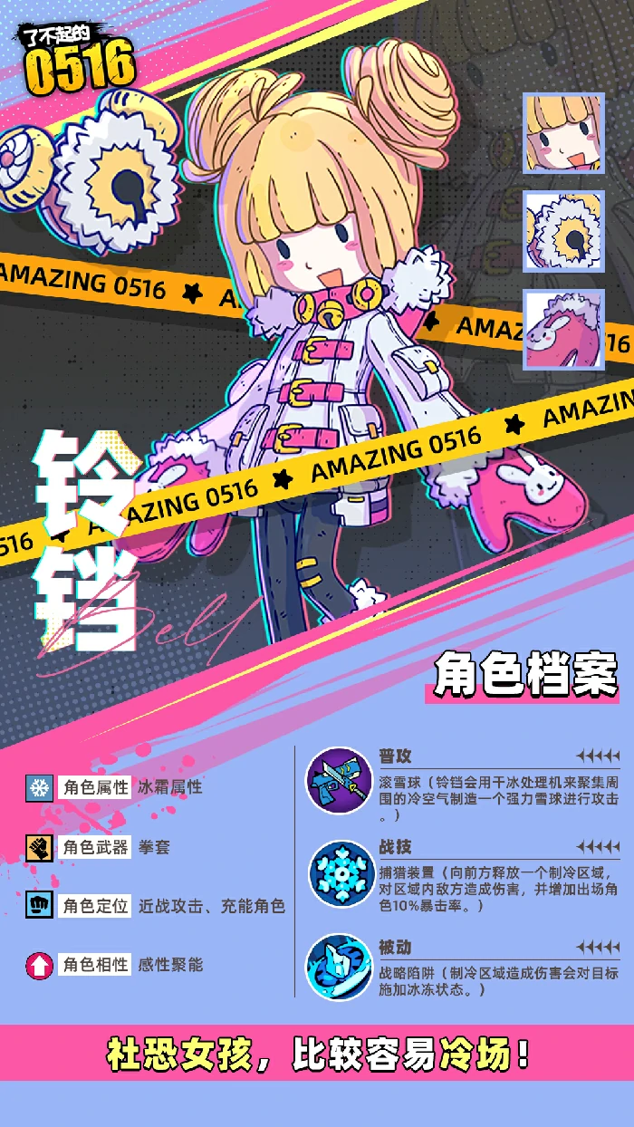 普通攻击:滚雪球——借助干冰装置凝聚冷空气,制造雪球攻击敌人。