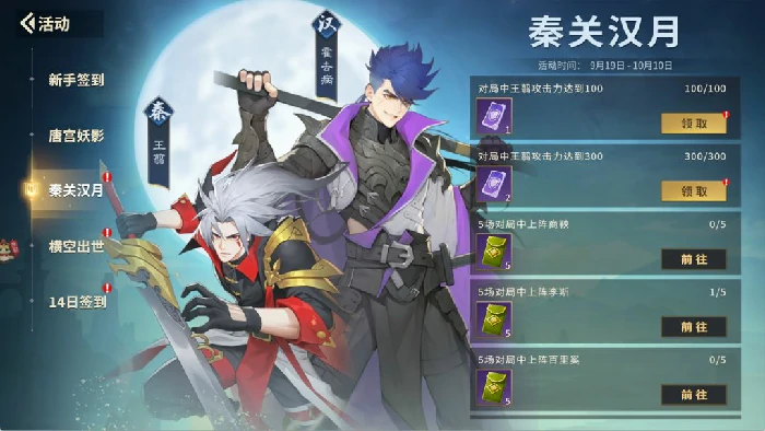 完成秦、汉阵营引导任务,获互动信物、保护卡。