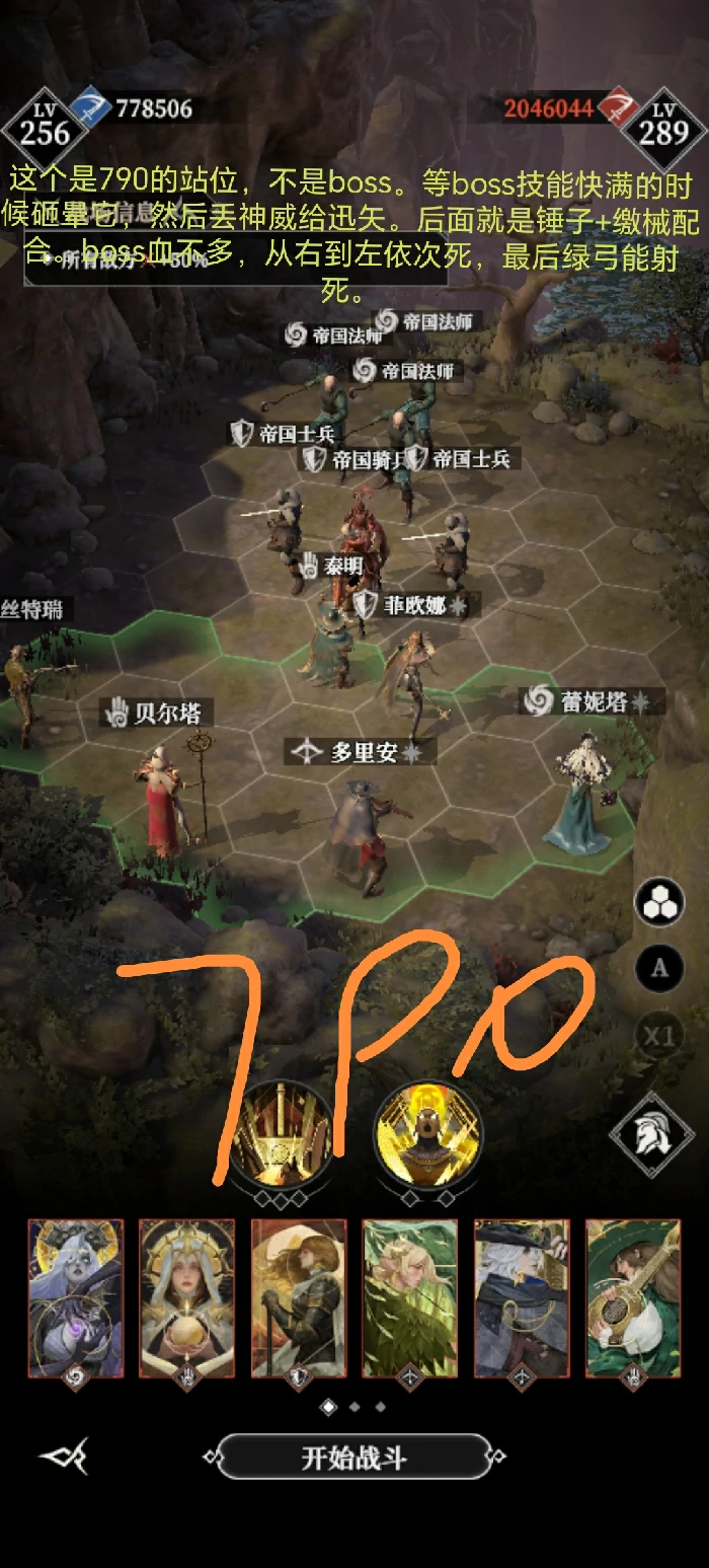 注:图示为关卡站位,非BOSS本体。卡技能读条→砸晕控场→神威给迅矢→锤缴联动→磨血清召唤→绿弓终结