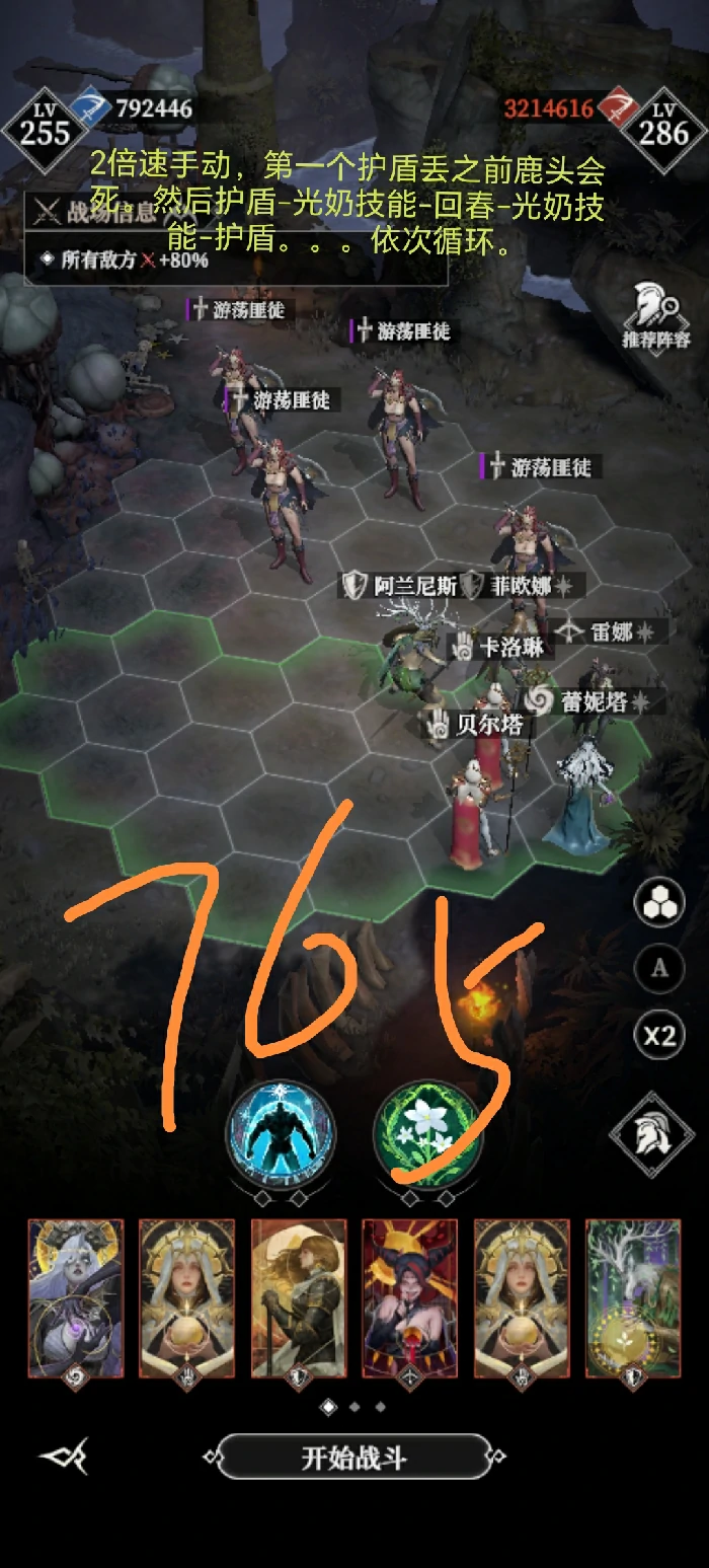 地下城堡4墓穴765层配队:双光奶+高输出。全程开2倍速手动操作。