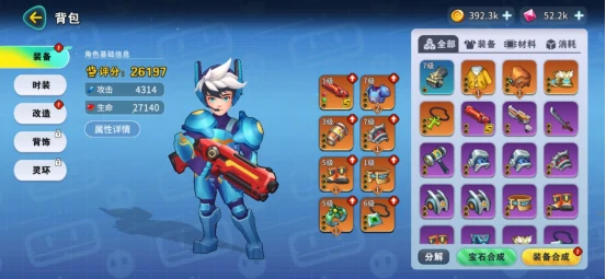 装备养成以品质晋升为核心,辅以升级与宝石镶嵌。合成提升装备品质,后期套装打造消耗大量装备资源。