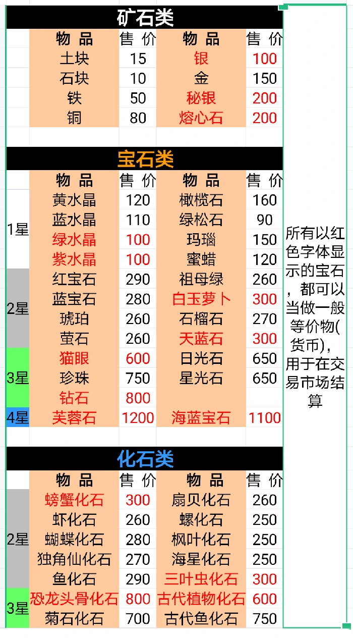整数值、高单价的宝石类物品适合作为交易中的货币使用。