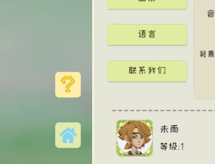 设置中调整音乐、画质,提供邮箱绑定功能(见前文),左下方“?”图标为游戏基础知识查询入口。