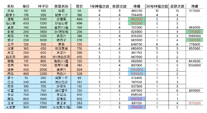 初始拥有广阔耕地,自由规划开垦区域与位置。季节不同,可种作物种类变化,注意选择当季适宜种子种植。