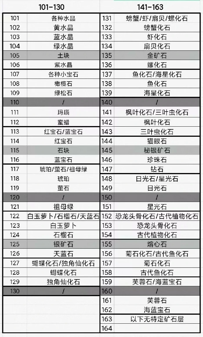 银矿(3层+)、金矿(6层+)、秘银(10层+)