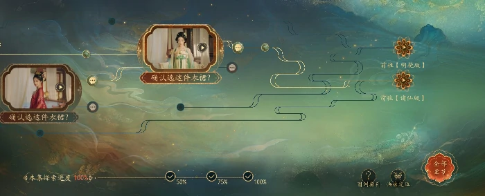 谪仙和明艳部分显示灰色正常,两者都100%就行。灰色是服装选不同路线,亮色是已选路线,和完成度没关系。