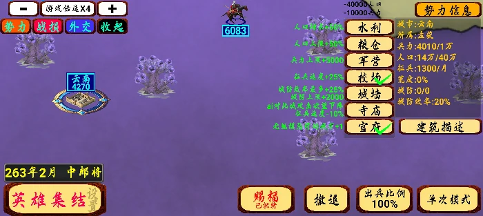 激活后,10城以上AI优先攻击其他势力,减少对玩家持续追击