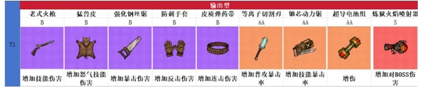二、资源型养至一定阶段,转攻输出型藏品。元素增伤类藏品未全列,按需搭配流派:打火机提火系伤害,旧电池强电系输出,长柄消防斧增冰系伤害。