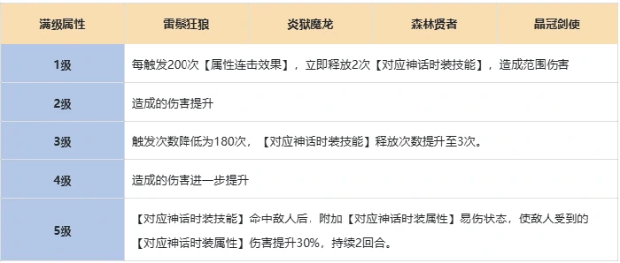 所有神话时装共用同一技能机制,具体效果因属性不同而有差异: