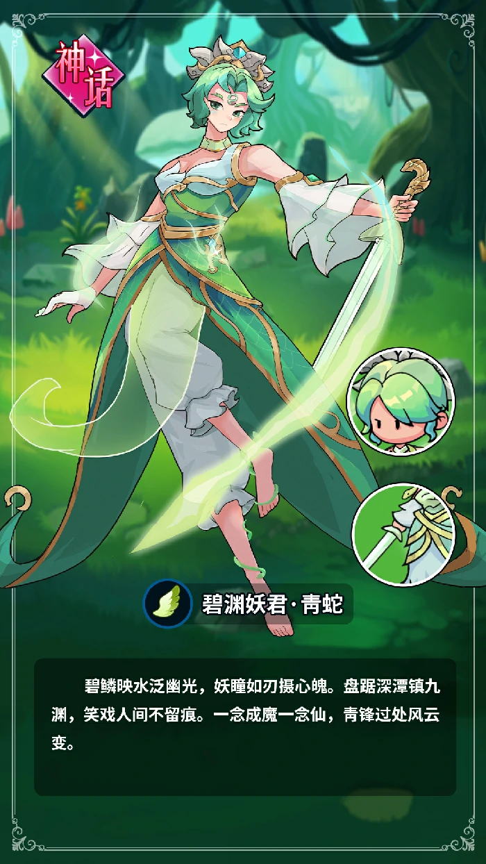 碧渊妖君青蛇:灵动刺客,兼具控制与爆发。制造幻境、施展摄魂瞳术扰乱阵型,剑技精准打击弱点。