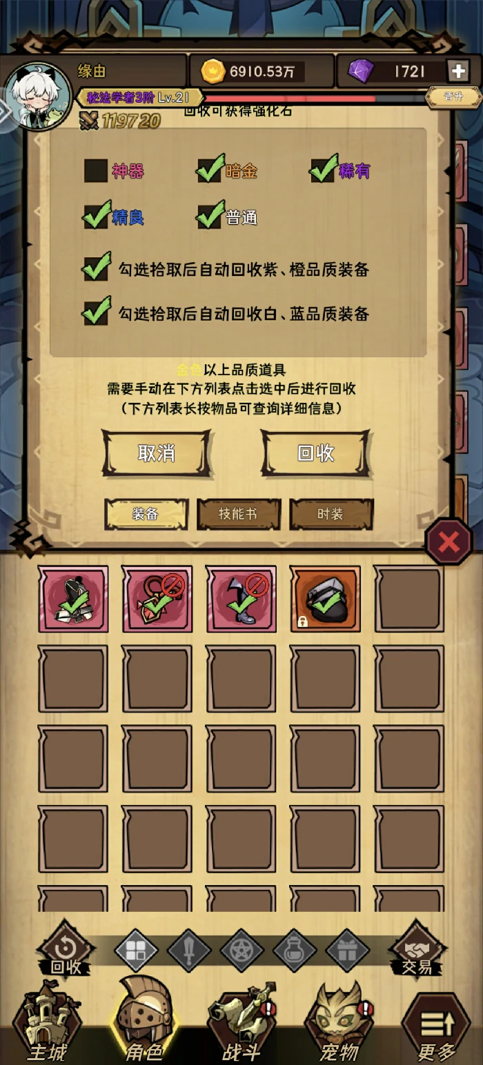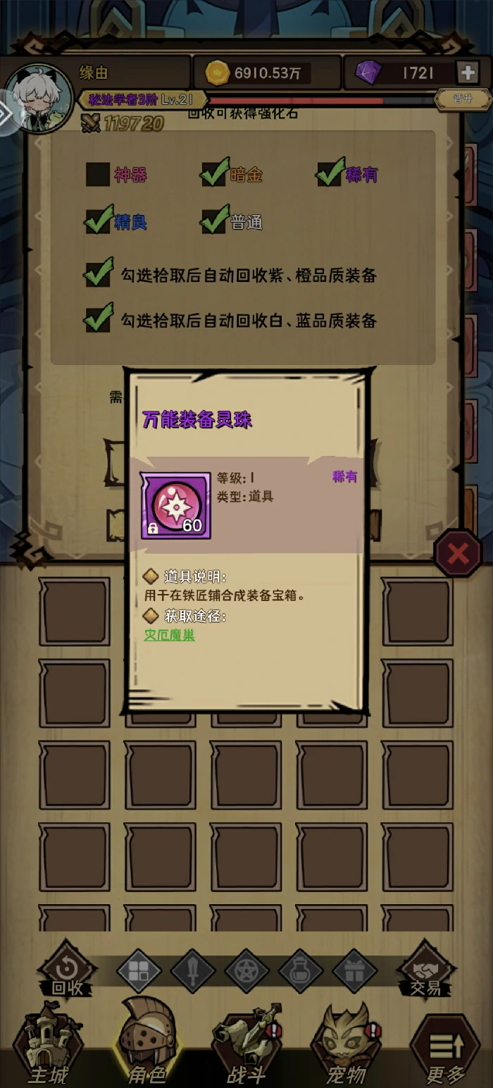 荣耀冒险王提升战力,必用装备重铸!三件同品质装备,立即重铸随机词条。投入三把蓝色长剑,可能获得攻击力+100或生命偷取+5%实用属性。