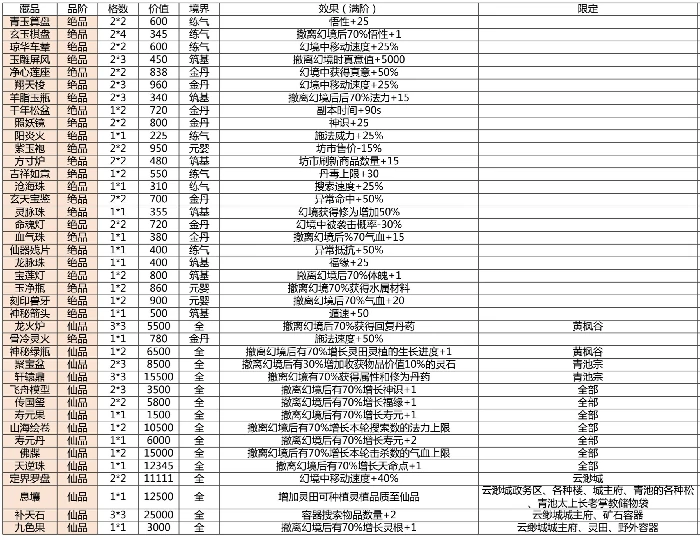 幻境修仙特色藏品获取指南:青玉算盘、玄玉棋盘,黄枫谷寻找;琼华车辈、玉雕屏风,青池宗获取;净心莲座、翔天梭、羊脂玉瓶,全地图搜集;吉祥如意、沧海珠,云渺城探索;灵脉珠、命魂灯,青池宗高层储物袋夺取;龙脉珠、仙器残片,云渺城城主府及矿石容器搜索。