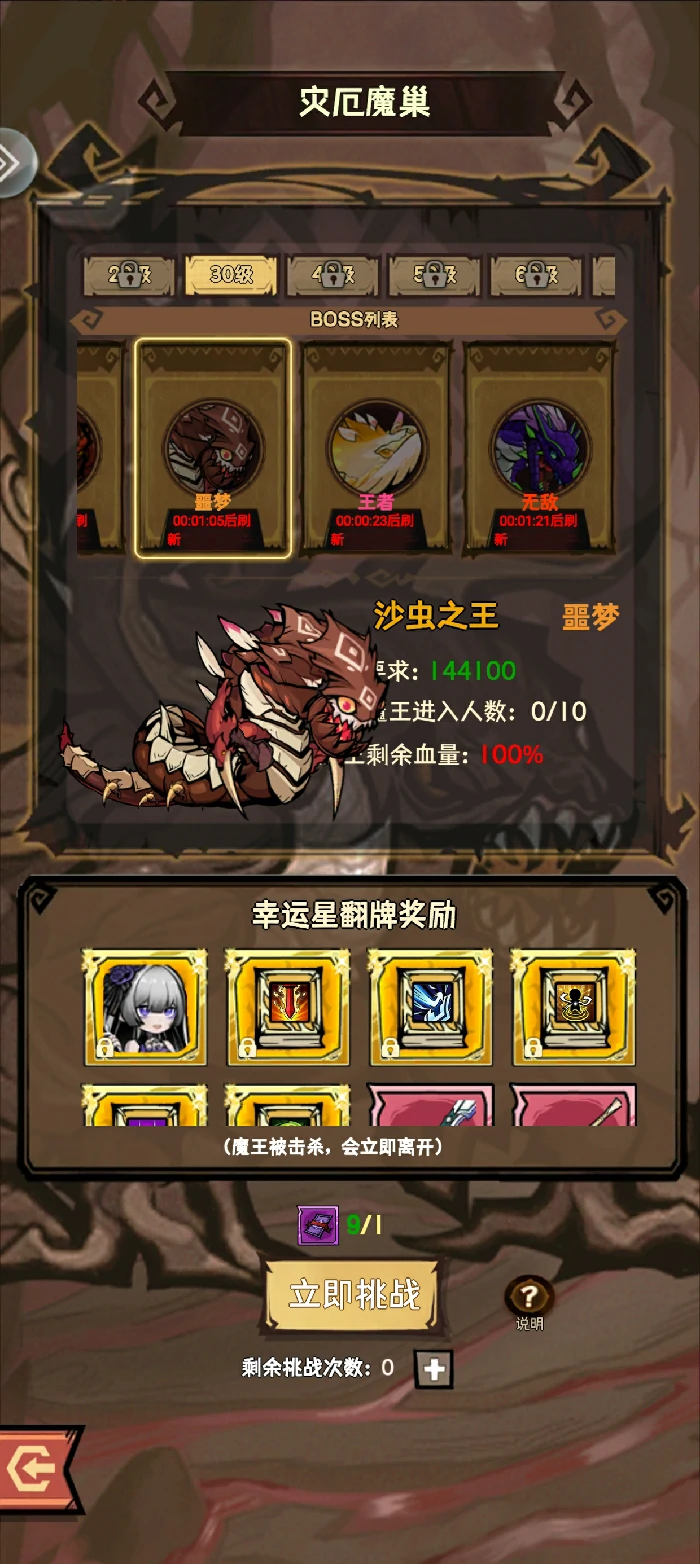 魔巢多人BOSS选噩梦难度,买光次数。完成后用挂机加速,若快离线且差25级,暂缓加速。