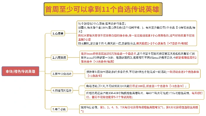 首周入手11个本体或自选英雄,主力输出培养至六星完全可行。