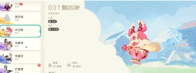 崩坏因缘精灵大口糕,后排魔法辅助,元理“饱足”,特性“小天使”。技能“大快朵颐”含主动被动。主动:锁定最近敌人,变糕点吞食造成魔法伤害,为同排友军加护盾(目标最大生命值16%)、提攻速24%,持续8秒。
