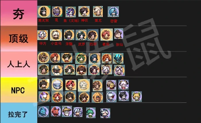 组合推荐:犼+鱼+神农、毕方+夸父+神农、黑无常+神农+忽雷+武罗,夸父可过渡使用