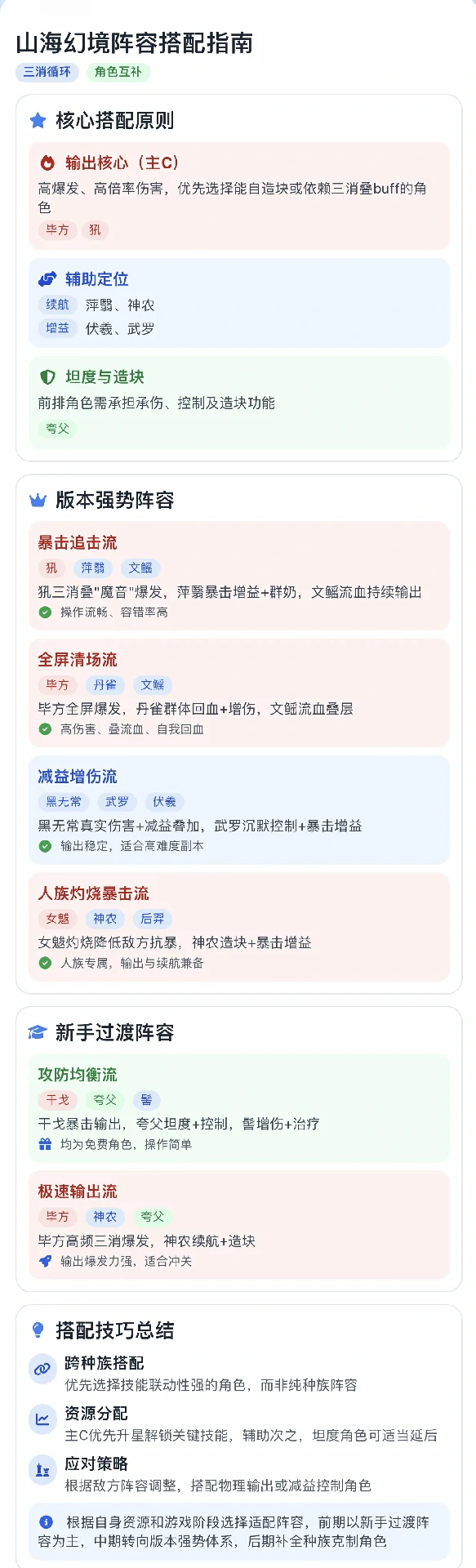 山海幻境实用阵容搭配建议