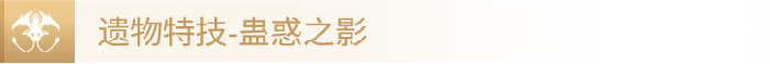 侵染能量达15、40、100点,召唤持续25秒的蛊惑之影。能量层级决定幻影强度:100点能量召唤最高级别幻影,获特殊技能“侵入”,喷吐穿透诱惑之息,造成大量伤害。