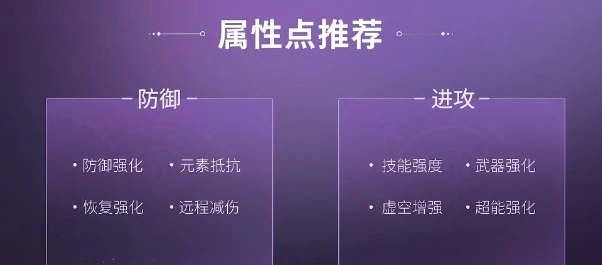 进攻向,优先提升技能强度、虚空增强、超能强化、武器强化。养成前期平衡发展,避免极端堆砌单一属性。
