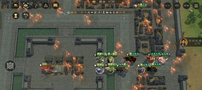 2-2 濮阳之战二:开局右侧单位被控,携带解控和增益辅助武将,配备日日与水月星符,确保诸葛亮及时出手,少量buff清场。