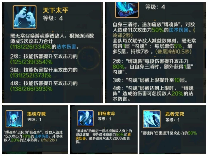 需要启动时间:黑无常勾魂与伏羲易卦需叠加至满层,方可发挥最大威力。