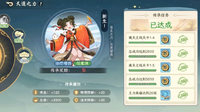 完成各阶段传承任务,获专属头衔、属性增益,提升整体战力,奖励含传说英雄髻和干戈、传说神器十二品金莲、山河社稷图等。