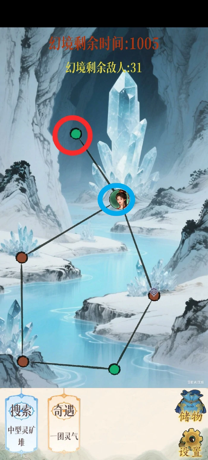 图中蓝色圆圈:标神识点位;红色圆圈:标隐藏地点。