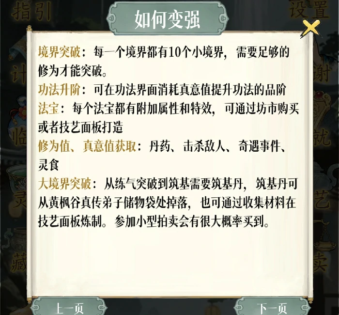 第一步:消耗初始500灵石,坊市购买2本功法(提升属性)+1本术法(主动技能)。