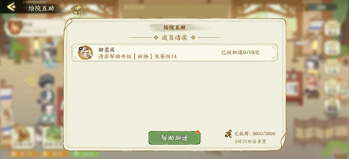 建筑加速互助:主界面速完成,升级建筑时发求助,活跃绘院是关键。