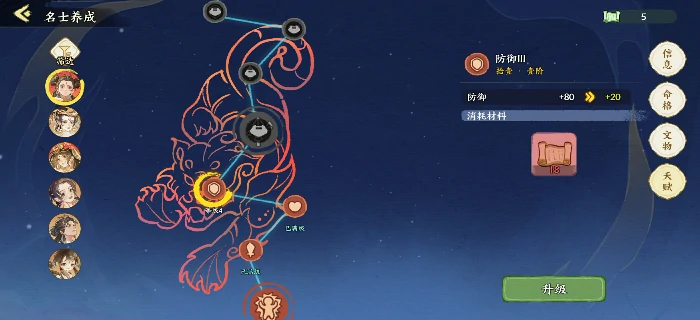 等级提升先拉满主力五人。序学功能没开前,能把部分名士暂时升到50级,提高资源产出效率。