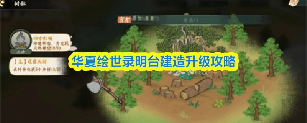 明台是游戏早期主线关键,引导熟悉时代进程。建造步骤:按指引绘制图纸,前往伐木场,点击斧头工具选树五次收集木材,返回废墟搭建,完成即标志上古时代主体进度完结。