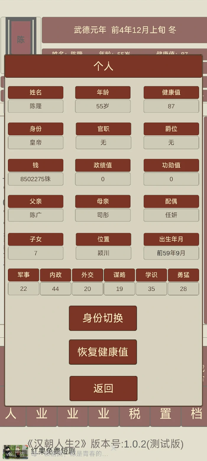 汉朝人生2:沉浸式模拟经营手游,体验规划人生、修身齐家、文韬武略。提升文学武学属性,踏上科举之路,跻身朝堂,实现治国平天下理想。以下为开局攻略。