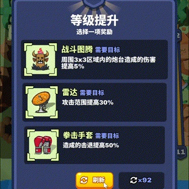 拥有3级防御塔,对应技能装备出现在升级奖励选项供选: