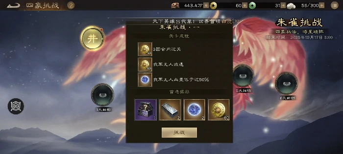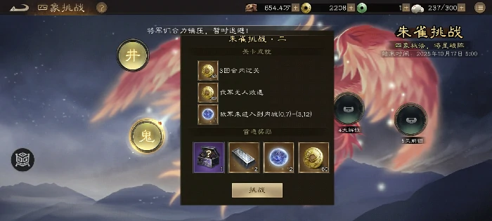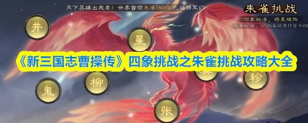 新三国志曹操传四象挑战开放朱雀挑战,含井、鬼、柳、星、张、翼、轸七关,以下是各关打法。