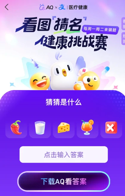 支付宝看图猜名福利活动上线!参与答题答对领现金红包。