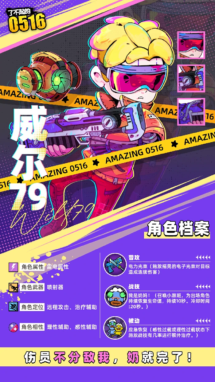 游戏了不起的0516伙伴威尔79解析:旧城公司科研部技术突进研发高仿生机器人,因识别系统漏洞,检测受伤单位触发强制救助机制,获称“和平之使者”。