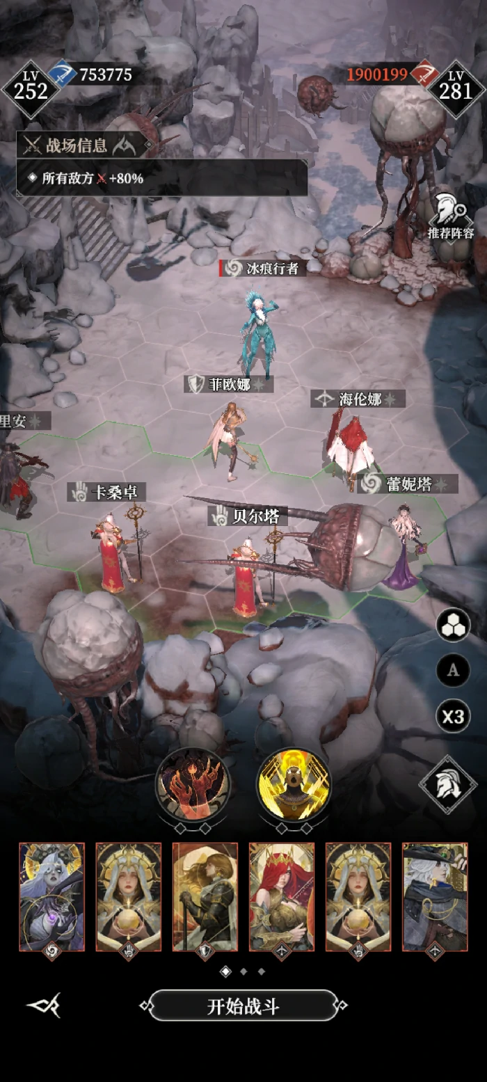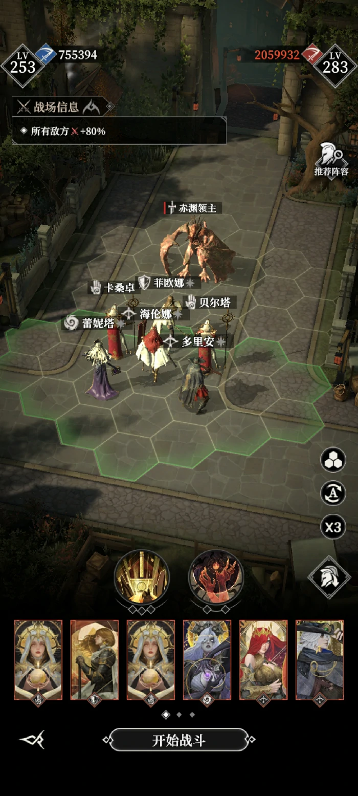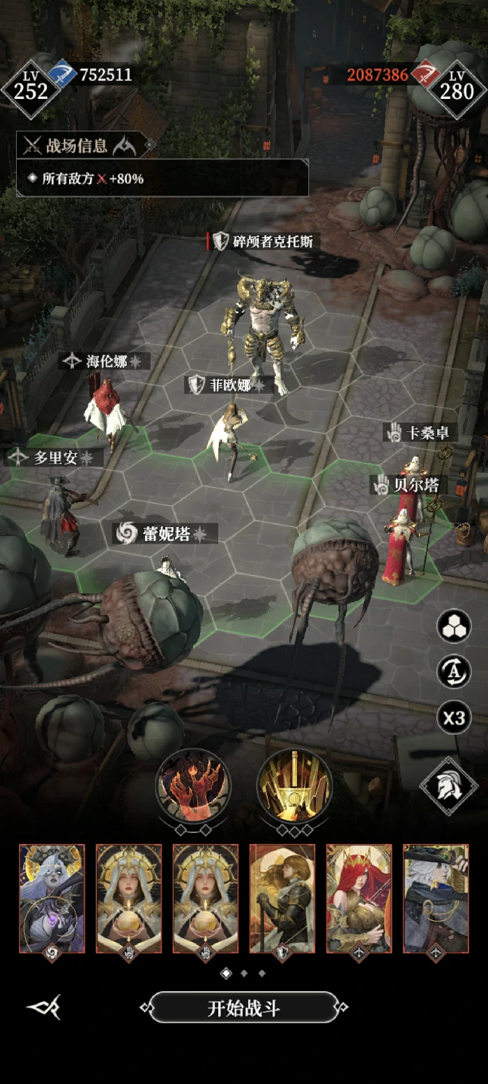 750层:需闪避操作看运气。带海伦娜、断荆和四名输出。断荆放大招时立刻用恶魔技能,防Boss转移仇恨打输出。把Boss控在右半区,半血后神威给攻击最高角色,通常放3次覆盖30秒。关键看断荆闪避是否触发。