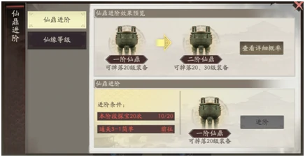 满足条件升级仙鼎,解锁更高等级、更高品质装备制作权限。