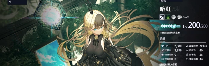 暗虹:短CD高频单体爆发,BLADE技能连续打击带溅射,击破要害效率高;被动概率叠加攻击,Boss战/竞技快速斩杀核心目标。