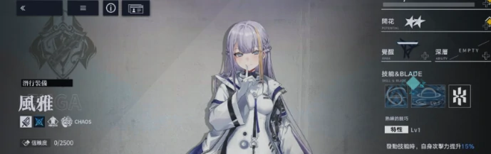 介绍风雅。她通过反击机制减少所受伤害,遭受攻击触发多段物理反击,增强队伍输出。另一技能大范围连续攻击,兼顾控场与伤害。攻防表现不错,能承伤并借反击消耗敌人。初始星级不高,培养后前排承伤与干扰能力显著提升。