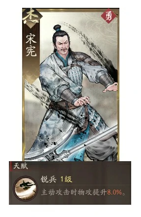 宋宪:通用增攻副将,没更好选择时能提供稳定攻击加成。