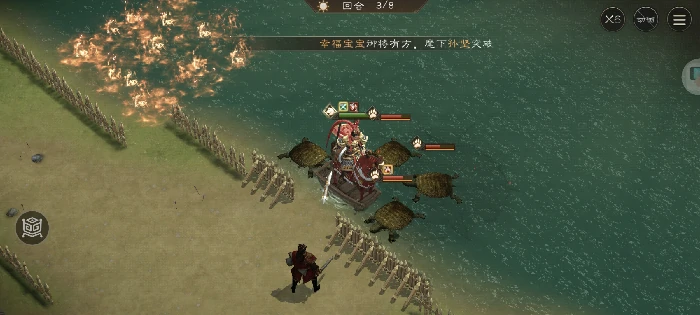 第五回合周瑜施放火计,首回合保留周瑜行动力。