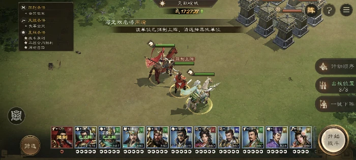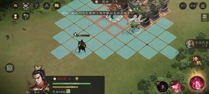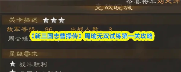 游戏新三国志曹操传周瑜无双试练第一关克敌皖城攻略:开局选6星周瑜,首回合释放火烧技能,指挥吕布、赵云贴近敌方。次回合周瑜后撤保命,依赖赵云反伤与吕布高输出推进。