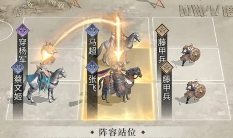 站位要点:让马超覆盖张飞、蔡文姬追击格,主输出拉满。前排放盾兵,后排弓兵等远程。