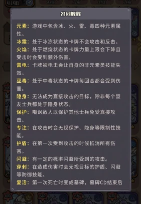 部分卡牌攻击附带元素效果,以下是元素属性基础说明: