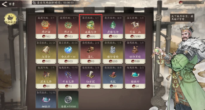 1. 群雄逐鹿商店用对应代币每月兑换1枚,商店每月刷新。