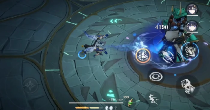实战中,北洛爆发点在三技能大招,尤其是变招。大招靠能量积累释放,三技能需额外斗志资源(血条下方拳头图标)。冠2状态下角色拥有3点斗志。获取斗志与左侧资源条相关:北洛使用打拳类攻击(普攻、重击或二技能)命中敌人,资源条积累。资源条共两格,一段时间未命中目标会减少。每攒满一格资源,使用一技能,命中后转化一点斗志。