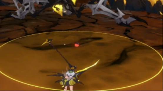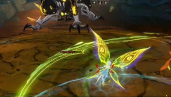 未及时击败,boss进入狂暴状态。屏幕出现四条旋转光幕,顺着光幕转向快速移动,规避密集晶体喷射。光幕结束,boss释放全屏震动攻击,选用赛琪等飞行角色,争取生存与反击机会。