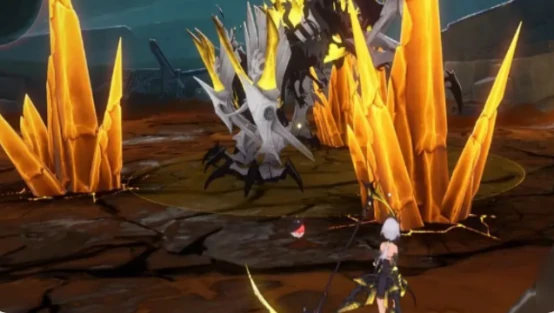 普通阶段,锁定四肢弱点。集火击碎四段四肢,boss进入处决状态,全力输出。战场环境密切关注:地面浮现黄色圆圈,立即撤到圈外,规避砸地攻击;出现红色标记,左右闪避或跳跃,躲开晶体尖刺。