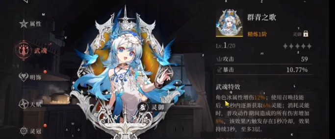 武魂必选群青之歌,专属适配灵能输出机制。提升灵能获取效率,强化三技能消耗灵能时的伤害,适配日常推图与高难首领战,无需考虑其他武魂。装备需堆叠关键属性,优选词条特效。副属性优先堆暴击率和冰属性伤害加成。